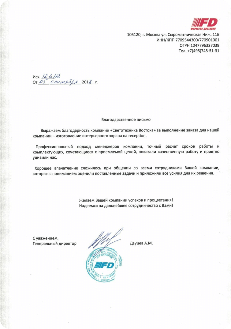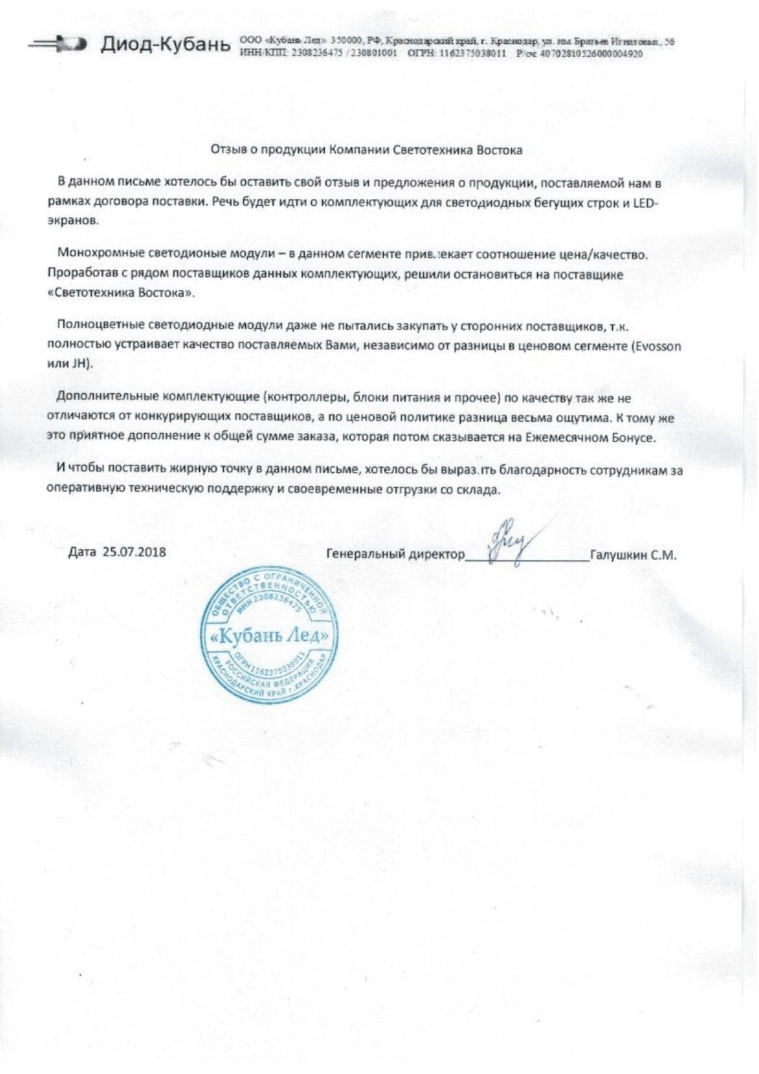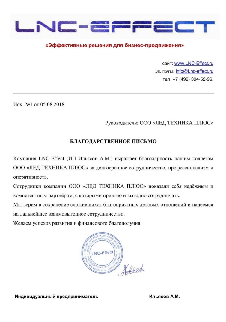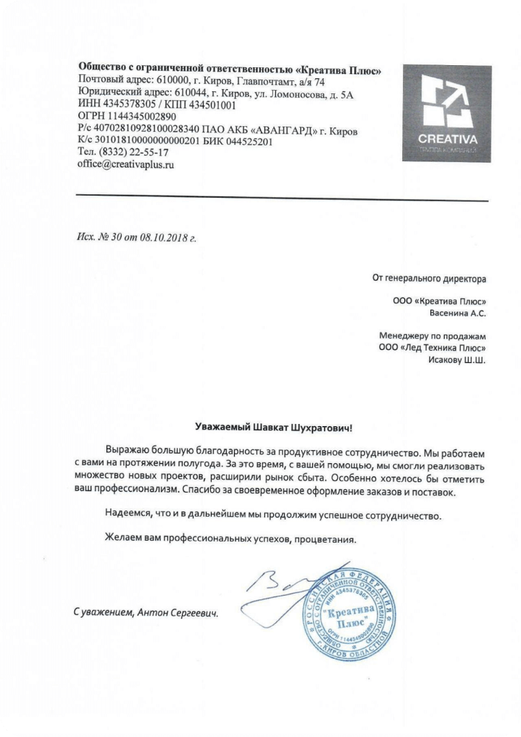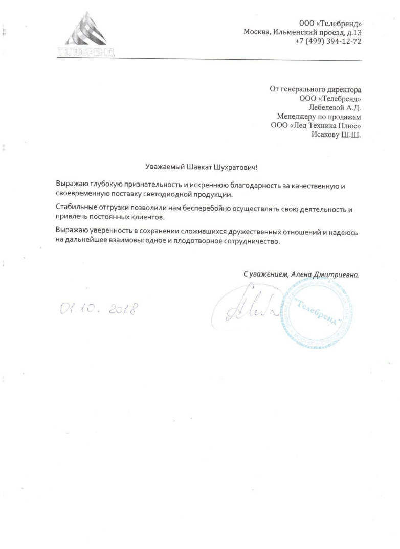 Рады поделиться с Вами благодарственными письмами, которые нам направляют. Мы внимательно следим за качеством наших товаров и услуг, что подтверждается отзывами.