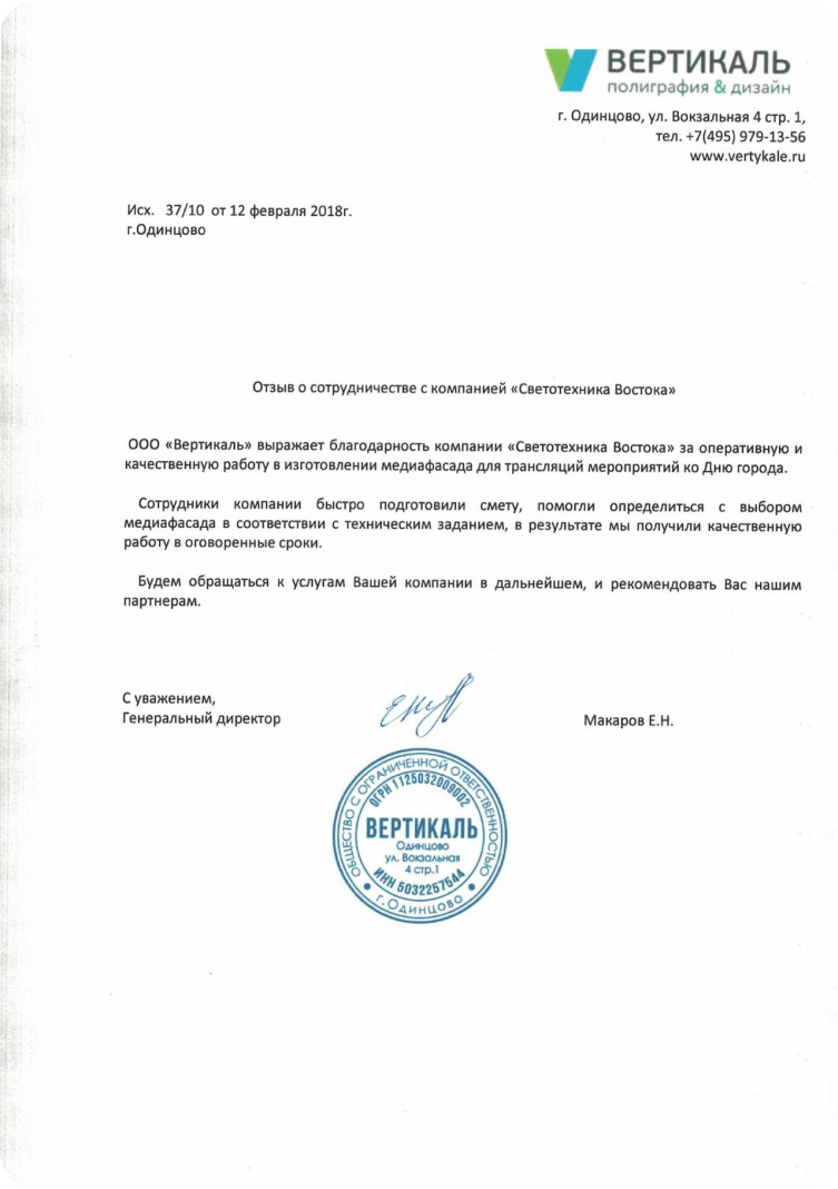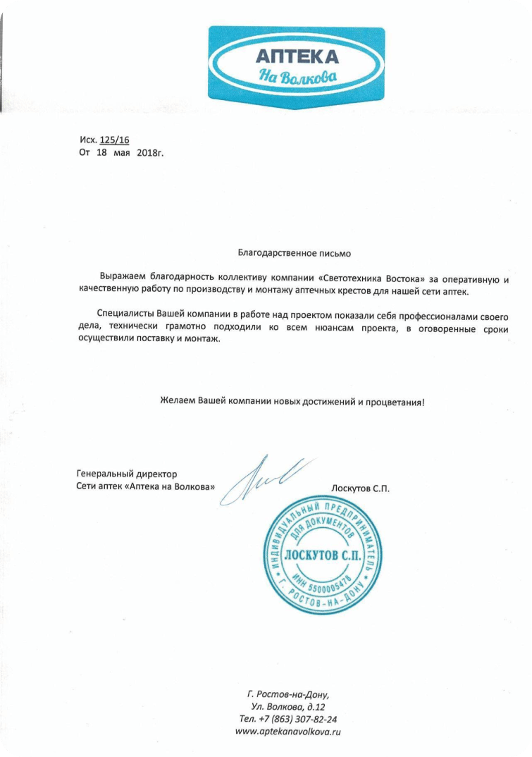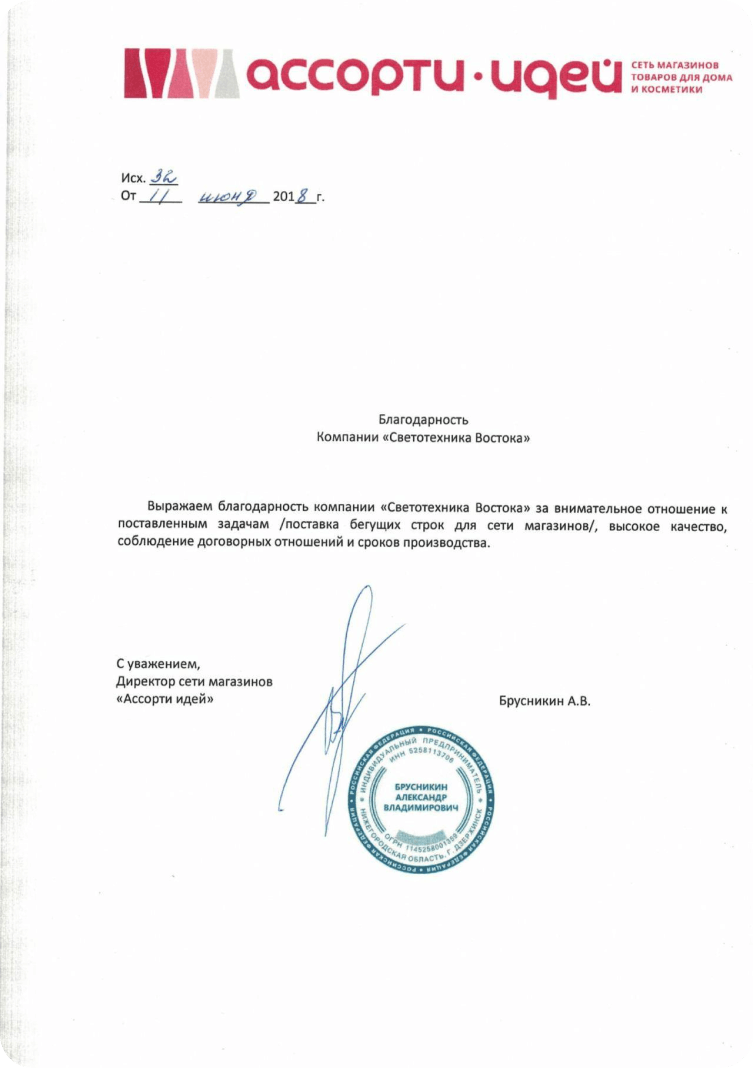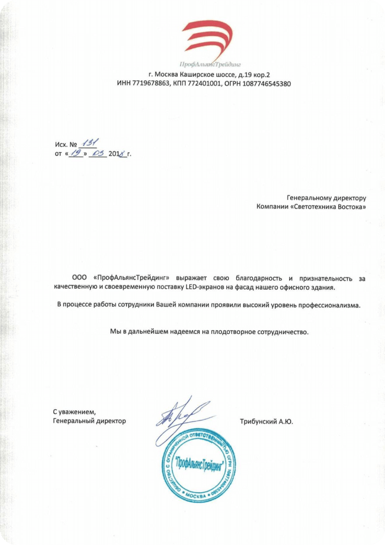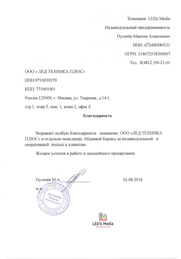 Рады поделиться с Вами благодарственными письмами, которые нам направляют. Мы внимательно следим за качеством наших товаров и услуг, что подтверждается отзывами.